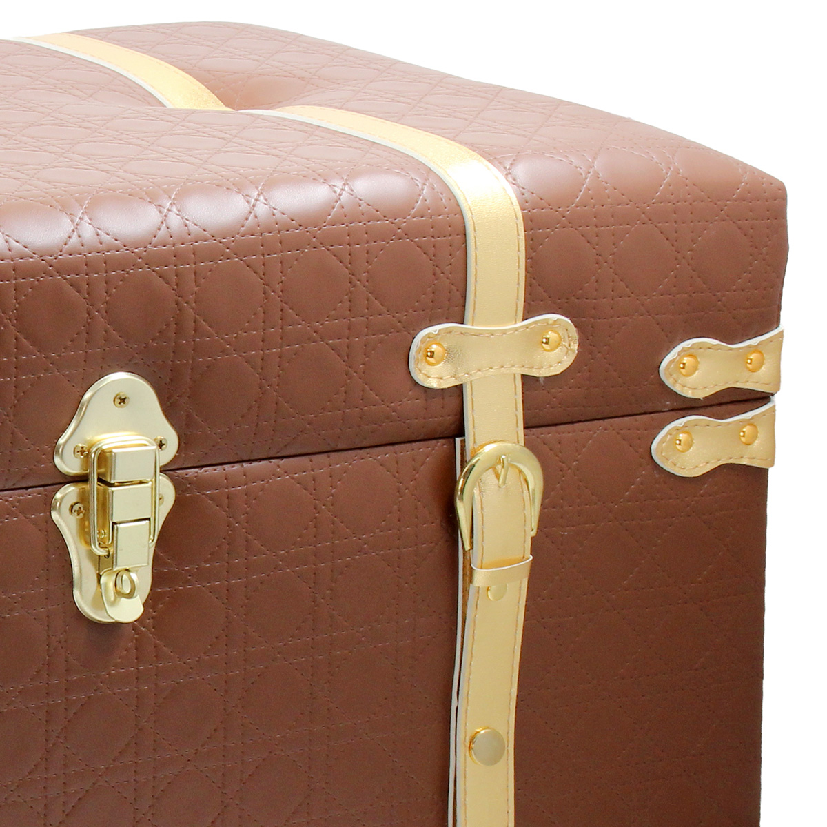 Μπαούλο αποθήκευσης ξύλινο 58Χ35Χ35 εκ. με επένδυση PU καφέ και χρυσές λεπτομέρειες