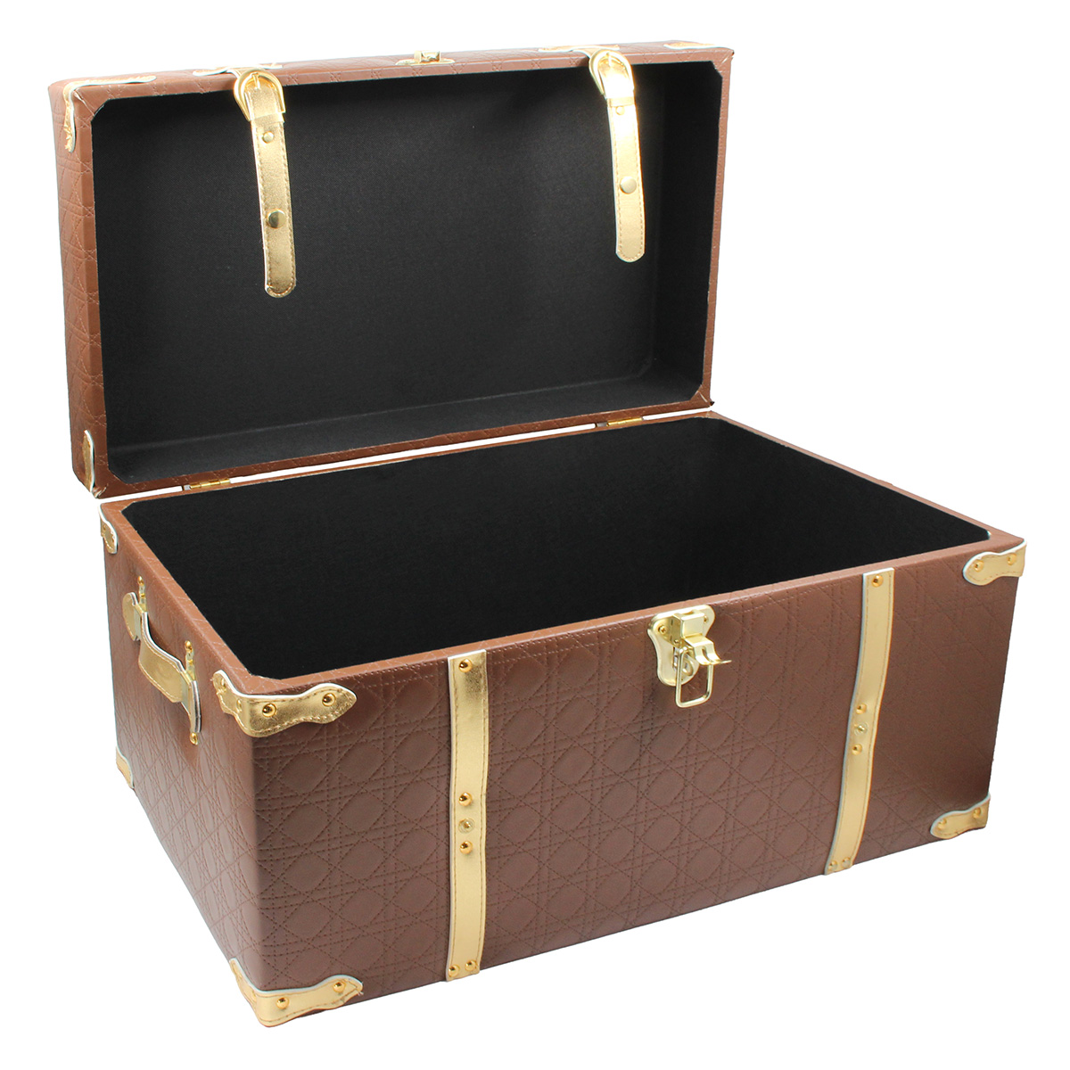 Αυτό το ξύλινο μπαούλο αποθήκευσης 58Χ35Χ35 εκ. με επένδυση PU σε καφέ και χρυσές λεπτομέρειες είναι κομψό και λειτουργικό, ιδανικό για κάθε στυλ διακόσμησης.