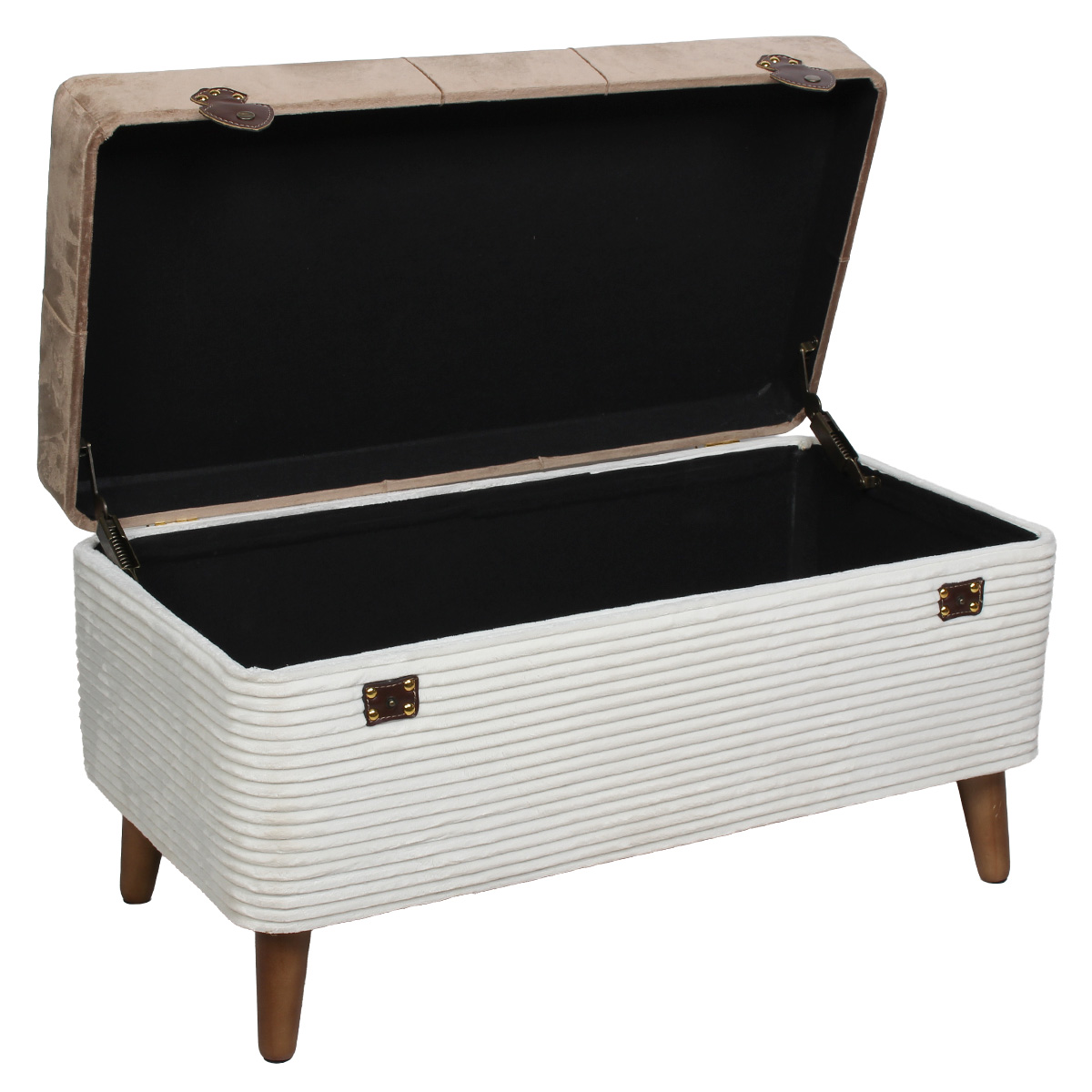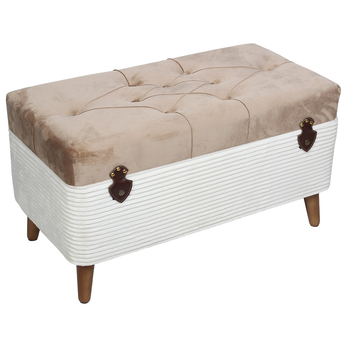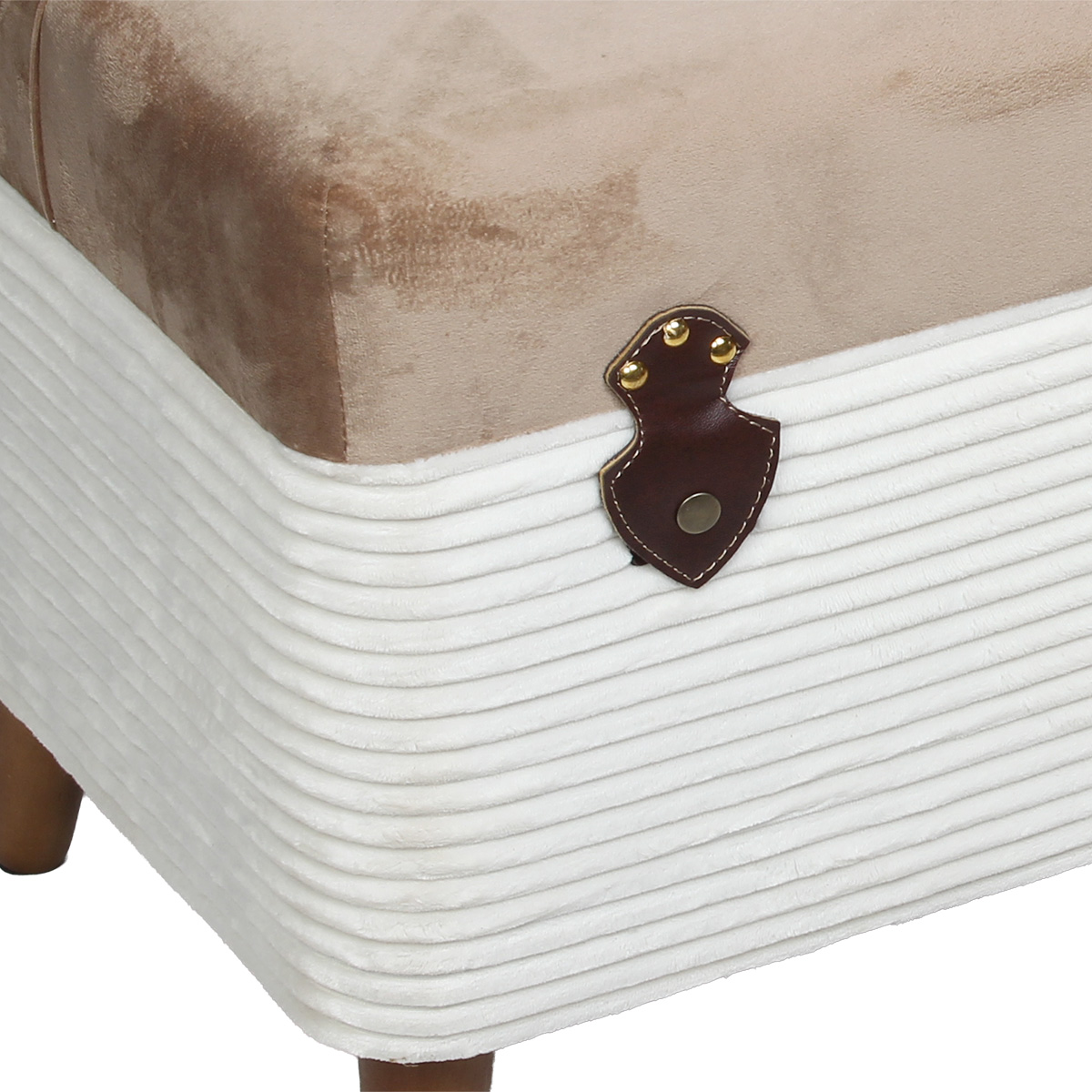 Μπαούλο – Σκαμπό ξύλινο 80Χ40Χ44 εκ. Βελουτέ – Γούνα Εκρού-Καφέ – KESKOR 52205-1
