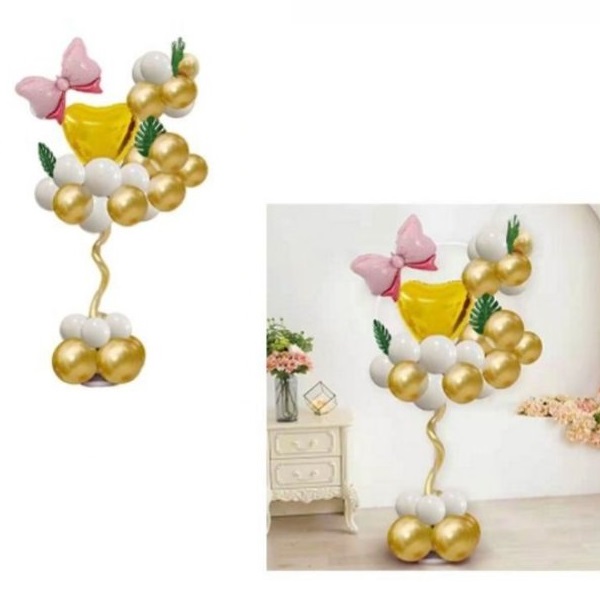 Το πακέτο περιλαμβάνει αλουμίνια μπαλόνια σε λευκές και χρυσές αποχρώσεις.