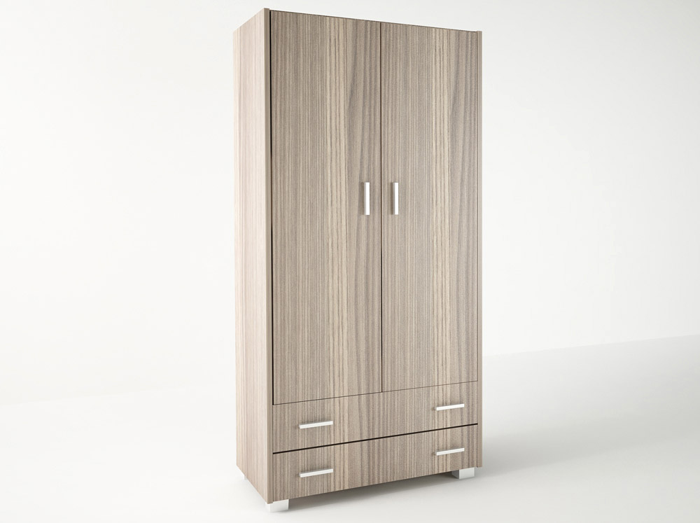 Ντουλάπα δίφυλλη κατασκευασμένη από μελαμίνη άριστης ποιότητας και ανθεκτικότητας. Η ντουλάπα διαθέτει 2 βαθιά συρτάρια αποθήκευσης μία μεταλλική βέργα για κρεμάστρες και μεταλλικά χερούλια σε όλα τα φύλλα. Μία μοντέρνα επιλογή για να κοσμήσετε και να οργανώσετε το χώρο σας.