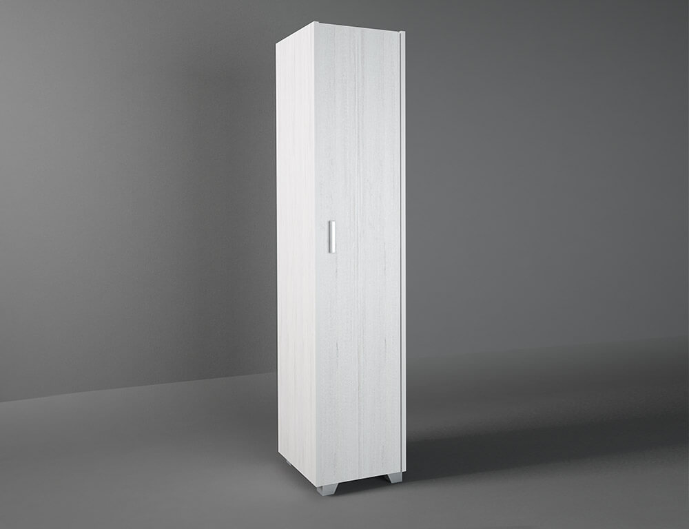 Ντουλάπα βαρέως τύπου μονόφυλλη κατασκευασμένη από μελαμίνη άριστης ποιότητας και ανθεκτικότητας σε χρώμα λευκό ρουστίκ. Περιλαμβάνει τρία ράφια για μεγαλύτερη ευκολία στην αποθήκευση και είναι διάτρητη εσωτερικά για τοποθέτηση των ραφιών σε οποιαδήποτε θέση. Διαθέτει αντιχαρακτική επιφάνεια ξύλου για αποφυγή γρατζουνιών. Μία κομψή επιλογή για να οργανώσετε το χώρο σας.