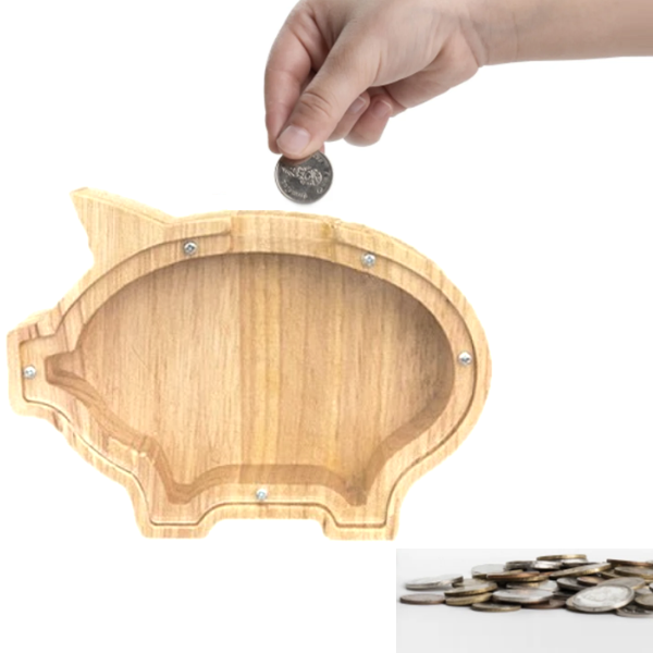 Ξύλινος κουμπαράς σε σχήμα Γουρουνάκι μπεζ 34983 OEM
