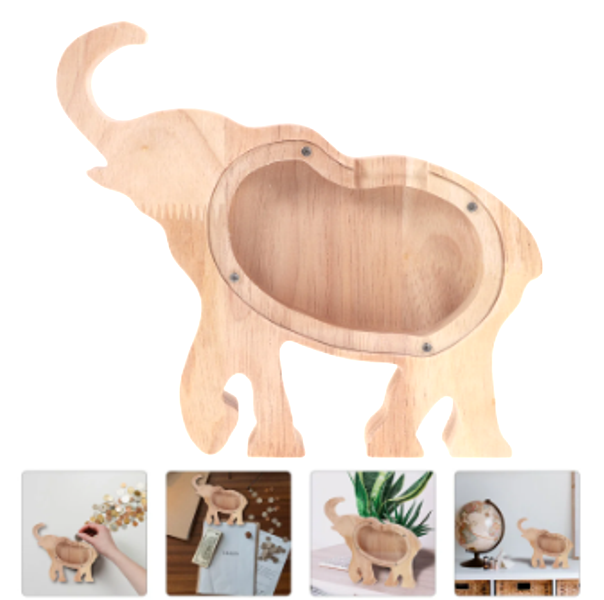 Ξύλινος κουμπαράς σε σχήμα Ελέφαντας μπεζ 34978 OEM