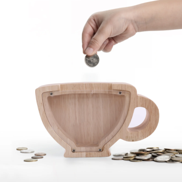 Ξύλινος κουμπαράς σε σχήμα Φλιτζανιού μπεζ 34979 OEM
