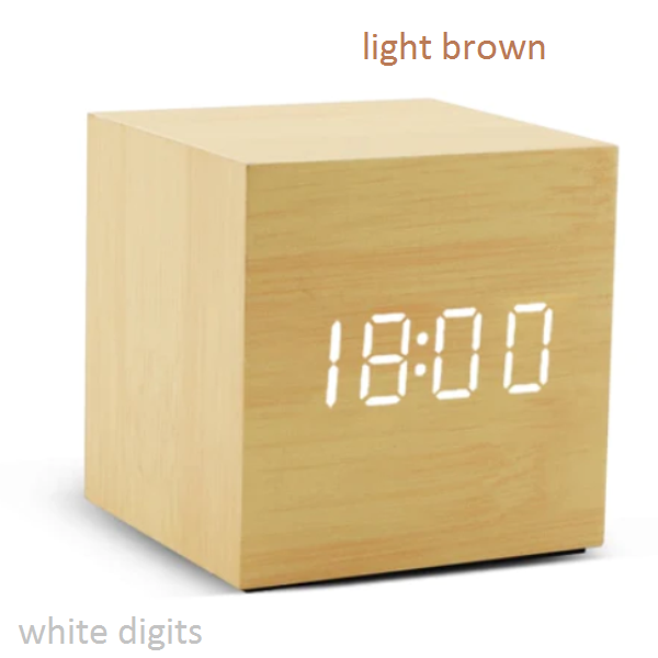 Ξύλινο επιτραπέζιο ρολόι κύβος καφέ ανοιχτό με λευκά ψηφία, απομίμηση ξύλου OEM