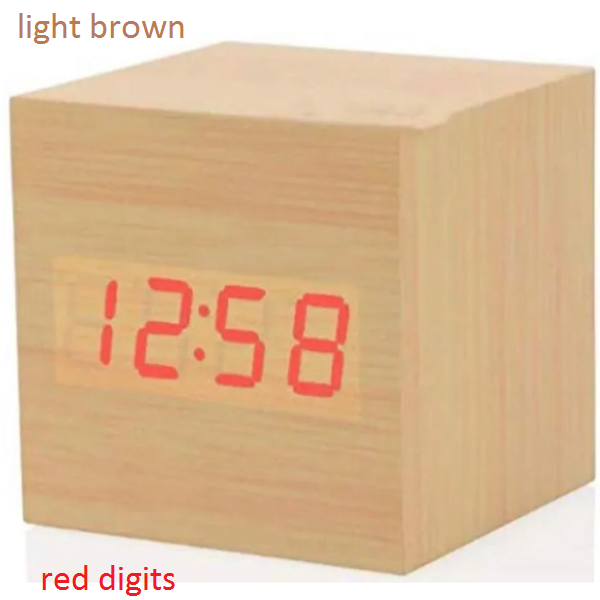 Ξύλινο επιτραπέζιο ρολόι κύβος καφέ ανοιχτό με κόκκινα ψηφία, απομίμηση ξύλου OEM