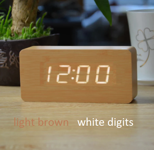 Ξύλινο ψηφιακό ρολόι XL LED ανοιχτό καφέ με λευκά ψηφία OEM