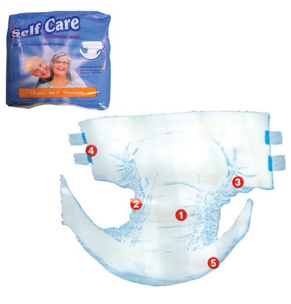 Χαρκτηριστικά : 1. πυρήνας extra dry 2. αδιάβροχα πλαϊνά φράγματα 3. ανατομικός σχεδιασμός 4. πλαϊνές ταινίες 5. ελαστικές σούρες