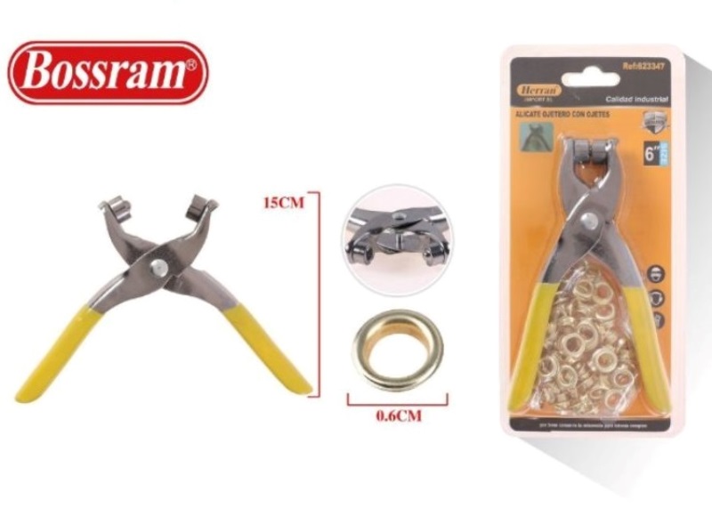 Πένσα για τρουκς μεταλλική.Εγκαθιστά τρουκ σε διάφορα υλικά (ζώνες, παπούτσια, κουρτίνες μπάνιου, τέντες, κλπ).Στη συσκευασία συμπεριλαμβάνονται 100 τρουκ (5 mm εσωτερικά και 6 mm εξωτερική διάμετρος)Εύκολο στη χρήση.Μήκος πένσας 15 εκ