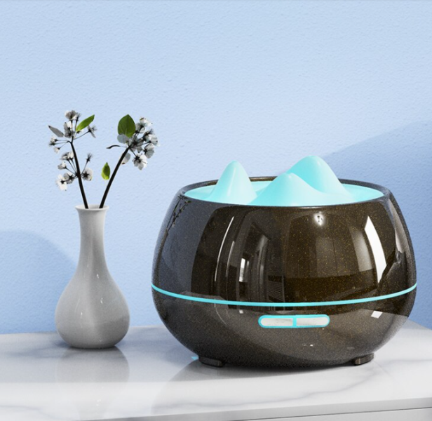 Παγόβουνο υγραντήρας συσκευή αρωμαθεραπείας με φωτισμό LED 500ml μαύρος LH-XI OEM