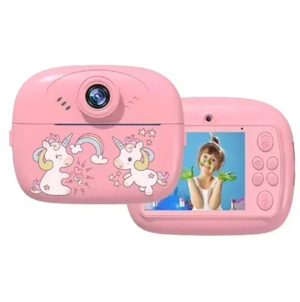 Παιδική φωτογραφική μηχανή με θερμικό χαρτί και μαρκαδόρους – Ροζ Unicorn OEM