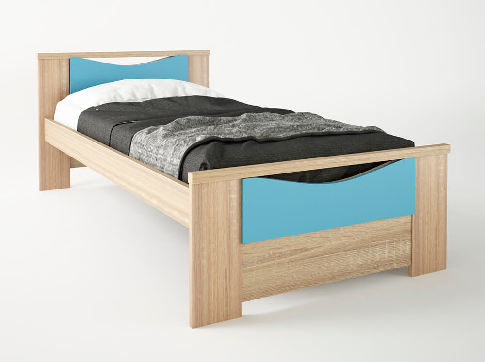 Κρεβάτι παιδικό μονό απο ενισχυμένο σκελετό μελαμίνης(πάχους 18mm) υψηλής ποιότητας , σε χρώμα δρυς-σιελ. Ένα μοντέρνο έπιπλο για το παιδικό δωμάτιο.