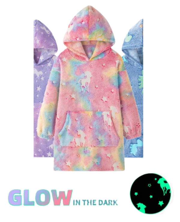 Παιδικό φούτερ με κουκούλα φλις που φωσφορίζει στο σκοτάδι – Πολύχρωμος μονόκερος OEM