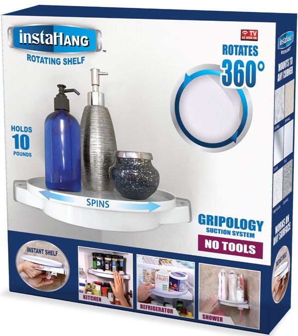 Περιστρεφόμενο ράφι που προσαρτάται σε οποιαδήποτε γωνία και επιφάνεια τοίχου χρησιμοποιώντας το σύστημα αναρρόφησης Gripology.