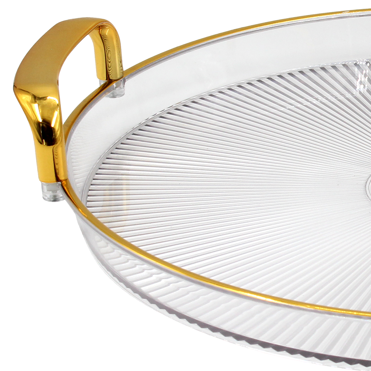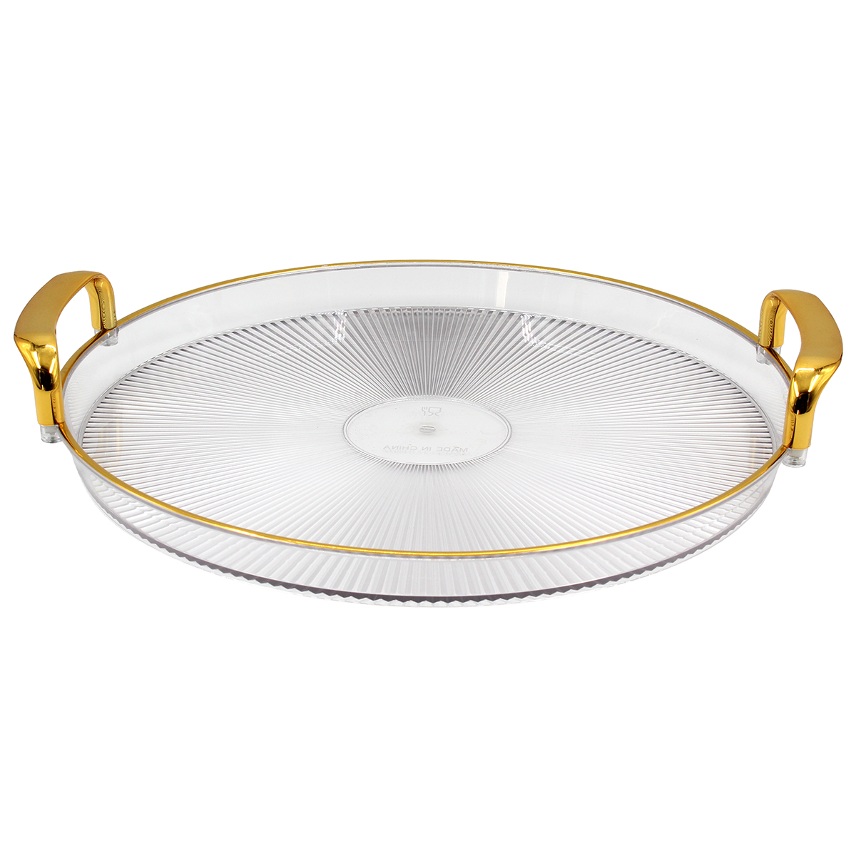 Πιατέλα – δίσκος σερβιρίσματος πλαστικός Φ32,5 εκ. διάφανος με χρυσό – KESKOR 42646-2