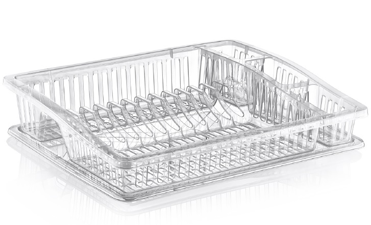 Πιατοθήκη μονή πλαστική με δίσκο περισυλλογής υγρών, σε διάφανο χρώμα.