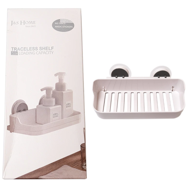 Πλαστικό ράφι τοίχου με αυτοκόλλητα στηρίγματα λευκό J&S HOME 21403