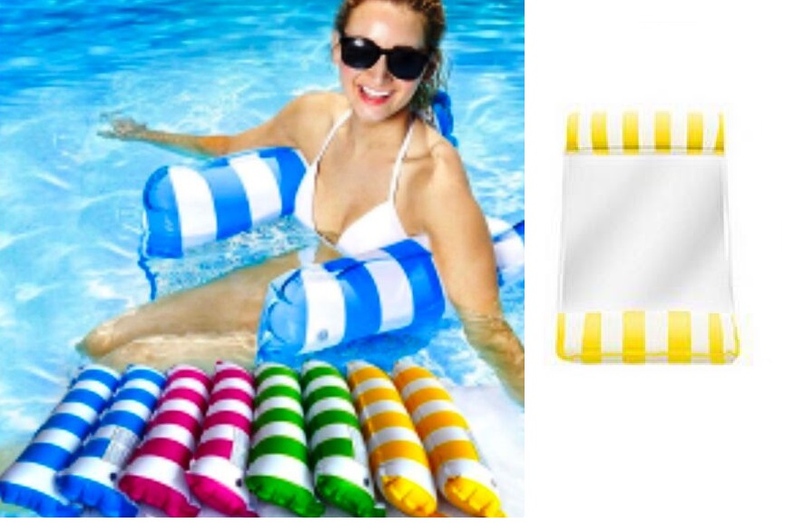 Πλωτή αιώρα για τη θάλασσα. Ιδανική για την παραλία ή την πισίνα. Με δύο φουσκωτά μαξιλάρια για να σας βοηθήσει να χαλαρώσετε περισσότερο. Κατασκευασμένη από αδιάβροχο υλικό. Απολαύστε υπέροχες διακοπές! Μέγεθος : 110 x 80 cm.