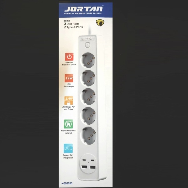 Πολύπριζο με 5 στάνταρ πρίζες, 2 θύρες USB και 2 θύρες φόρτισης Type-C. Κατασκευασμένο από άριστα υλικά, με διακόπτη ασφαλείας. Έξοδος USB (max) : 12W.