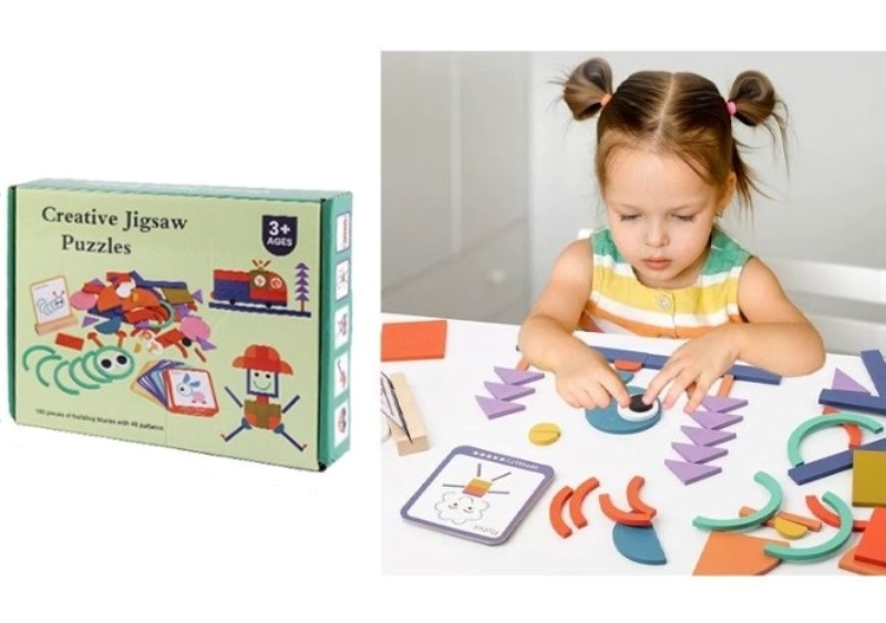 Περιέχει διάφορα γεωμετρικά σχήματα και 40 εικόνες που κατευθύνουν το παιδί τι ακριβώς να φτιάξει.