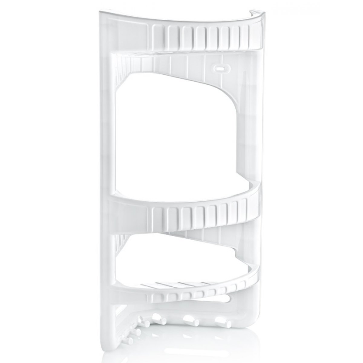Ραφιέρα μπάνιου γωνιακήμε τρία (3) ράφια & ειδικούς γάντζους για κρέμασμα σφουγγαριών, τοποθέτηση ξυραφιών κ.λ.π.. Η τοποθέτησή της γίνετε με βίδες στήριξης. Διαθέσιμη σε λευκό χρώμα.