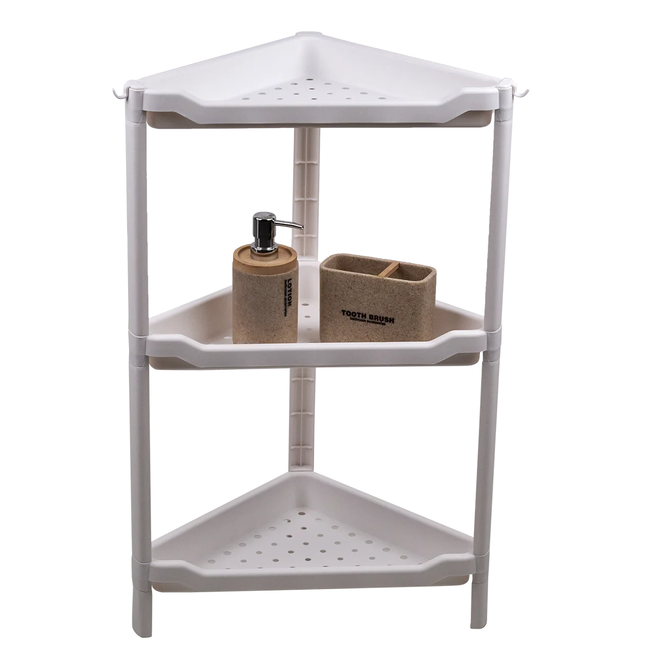 Ραφιέρα κατασκευασμένη από πλαστικό υψηλής ποιότητας και ανθεκτικότητας στη χρήση και στο χρόνο σε λευκό χρώμα. Διαθέτει τρία ράφια για την τοποθέτηση των προσωπικών σας ειδών και των μικροαντικειμένων. Ιδανική και πρακτική επιλογή για το μπάνιο ή την κουζίνα σας που θα συμβάλει στην οργάνωση του χώρου που θα τοποθετηθεί.
