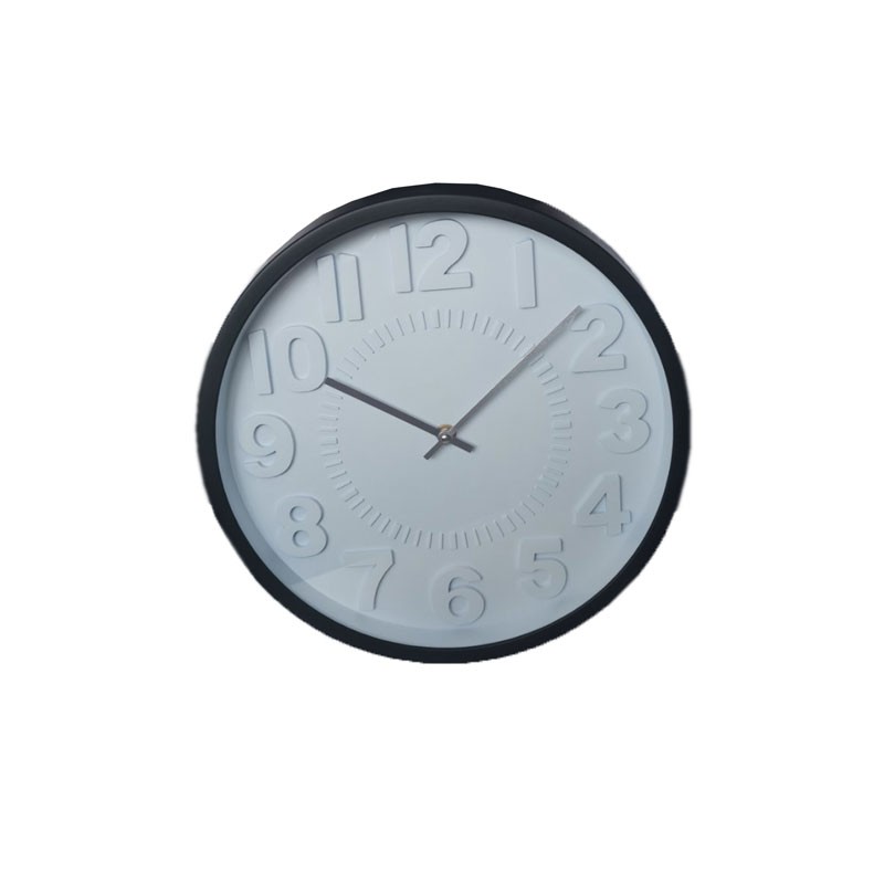 Ρολόϊ τοίχου στρόγγυλο με ARABIC καντράν (αναλογικοί αριθμοί όπως φωτό.) σε λευκό χρώμα και σκελετό σε χρώμα σε μαύρο