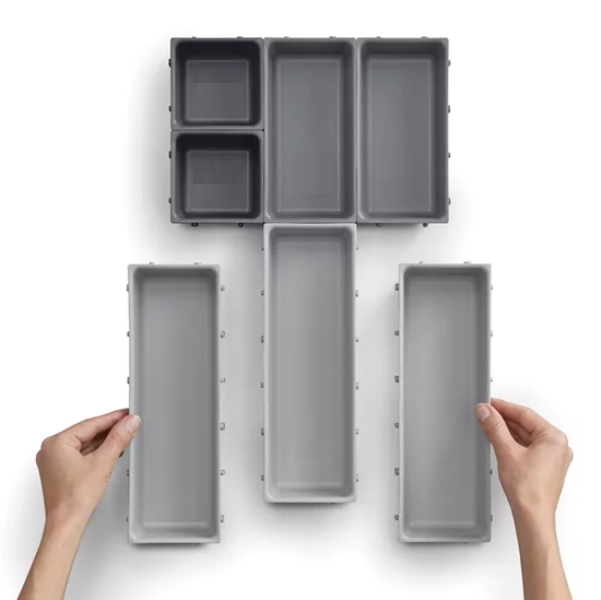 Μπορούν να κουμπώσουν μεταξύ τους από όλες τις πλευρές, επιτρέποντάς σας να τους τακτοποιήσετε με οποιαδήποτε σειρά ώστε να ταιριάζουν στο χώρο του συρταριού σας.