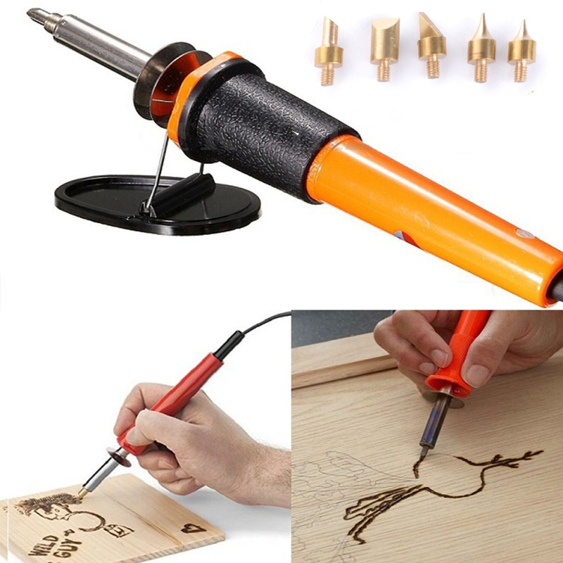 Σετ πυρογραφίας για καλλιτεχνία σε ξύλο! Έχει βάση στήριξης και 5 ανταλλακτικές κεφαλές για να κάνετε πολλά σχέδια. O πυρογράφος είναι 220V/240V 60W.