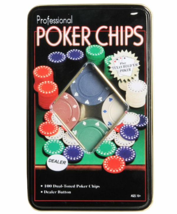 Σετ πόκερ, κουτί μεταλλικό με 100 μάρκες και 1 μάρκα dealer, σε πράσινο, κόκκινο, λευκό και μπλέ χρωματισμό.Ιδανικό για δώρο στα αγαπημένα σας πρόσωπα αλλά και για να περάσετε ευχάριστα τις γιορτινές μέρες!Διαστάσεις : 19x12x5εκ