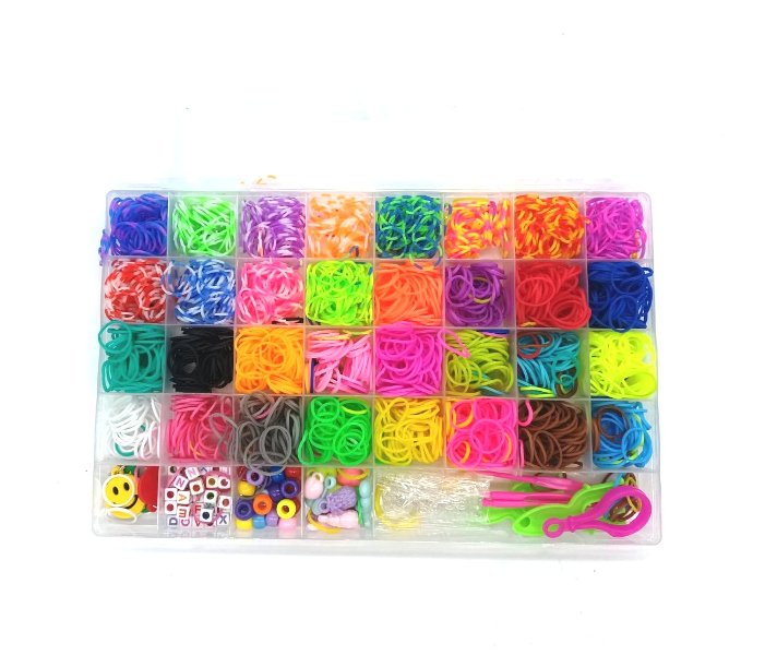 Σετ χειροτεχνίας με λαστιχάκια για βραχιολιάκια! Η αγαπημένη συνήθεια των παιδιών !!! Το σετ περιλαμβάνει 1600 λαστιχάκια σε διάφορα χρώματα και διάφορα άλλα στολίδια για απίθανους συνδιασμούς!