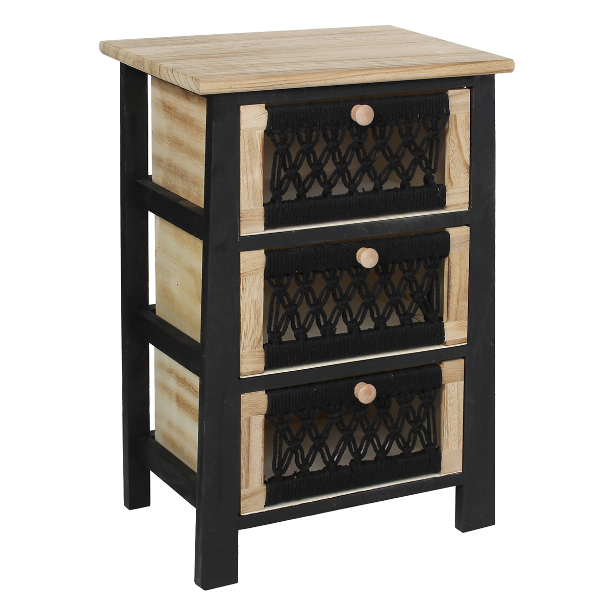 Συρταριέρα με 3 συρτάρια ξύλινη με σχοινί 40Χ27Χ60 εκ. Μαύρη – KESKOR 415001