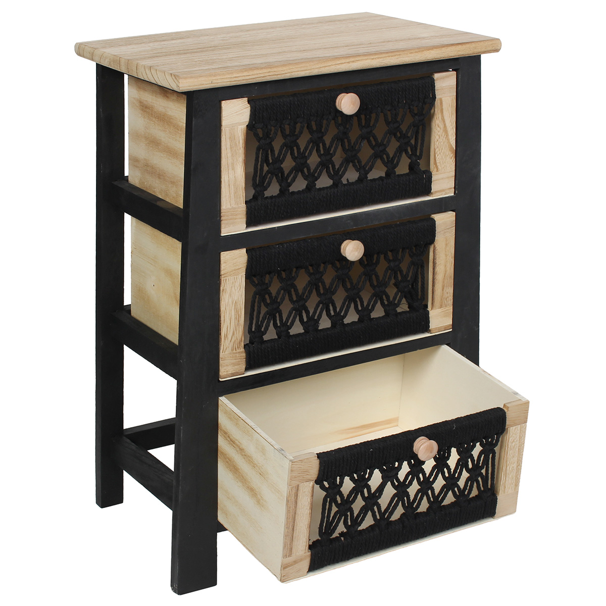 Συρταριέρα με 3 συρτάρια ξύλινη με σχοινί 40Χ27Χ60 εκ. Μαύρη