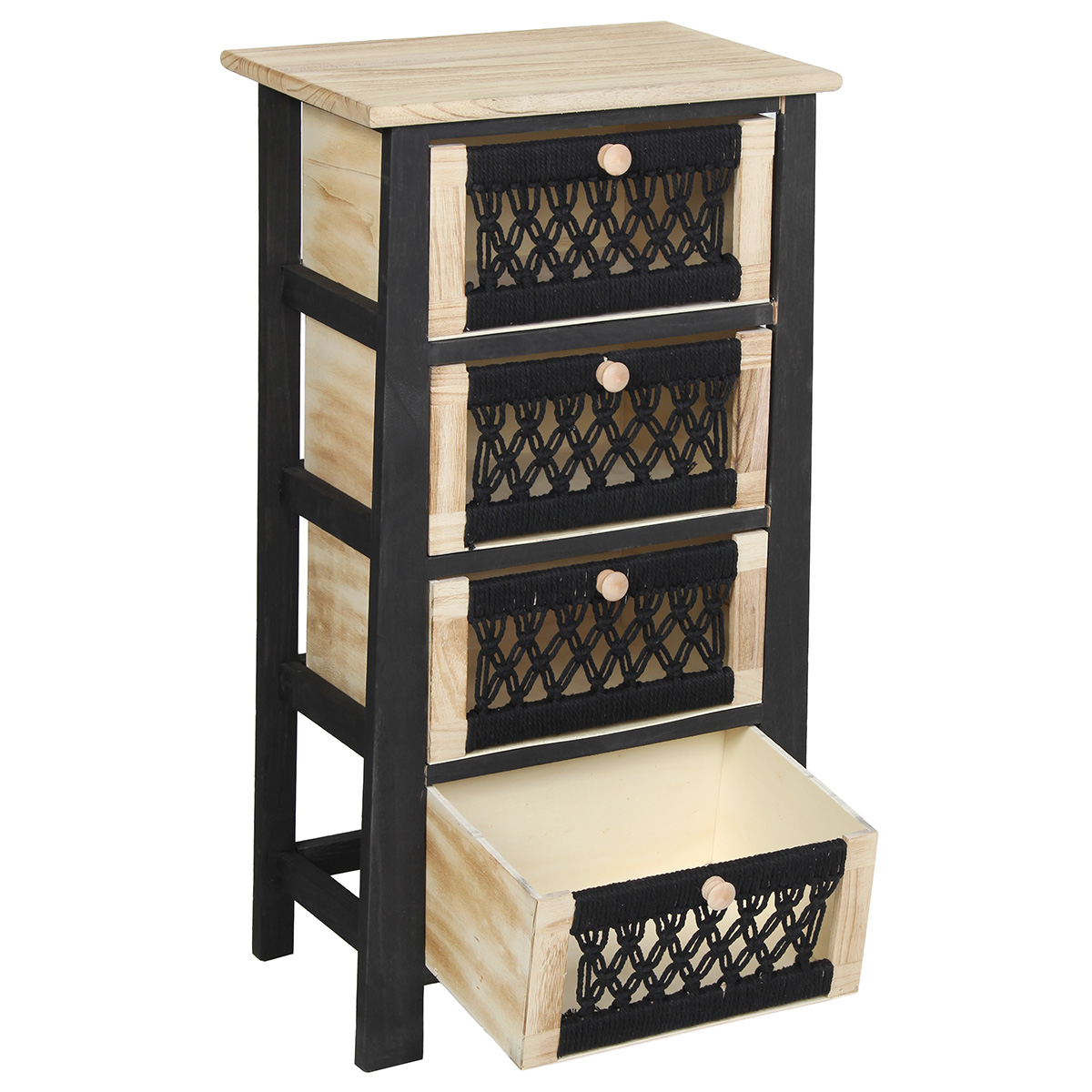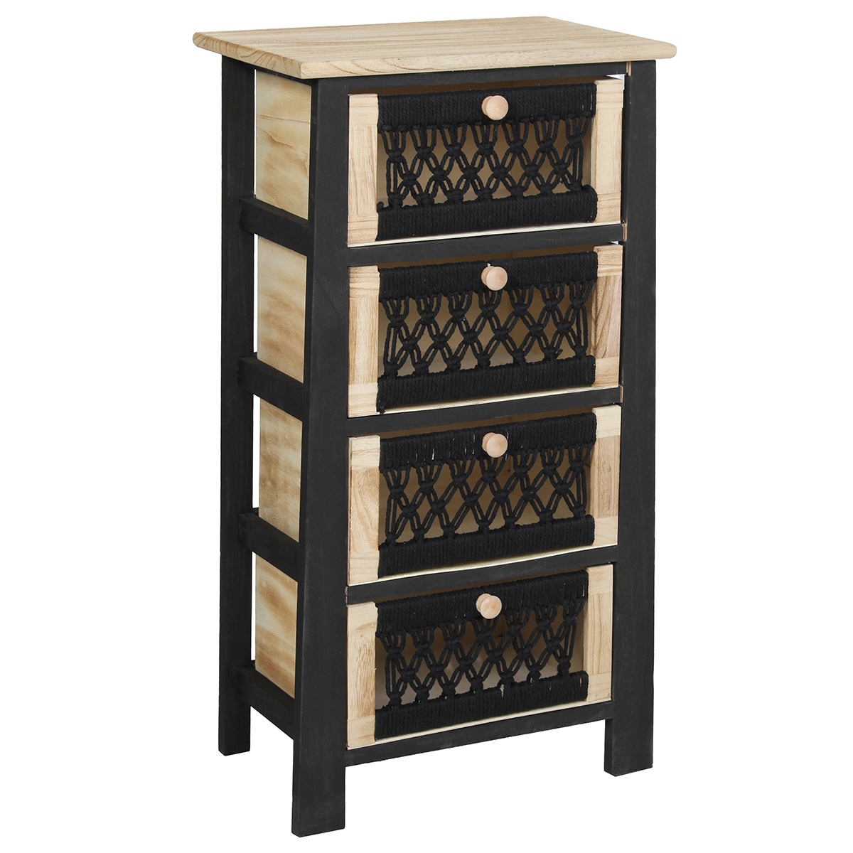 Συρταριέρα με 4 συρτάρια ξύλινη με σχοινί 40Χ27Χ77 εκ. Μαύρη – KESKOR 415002