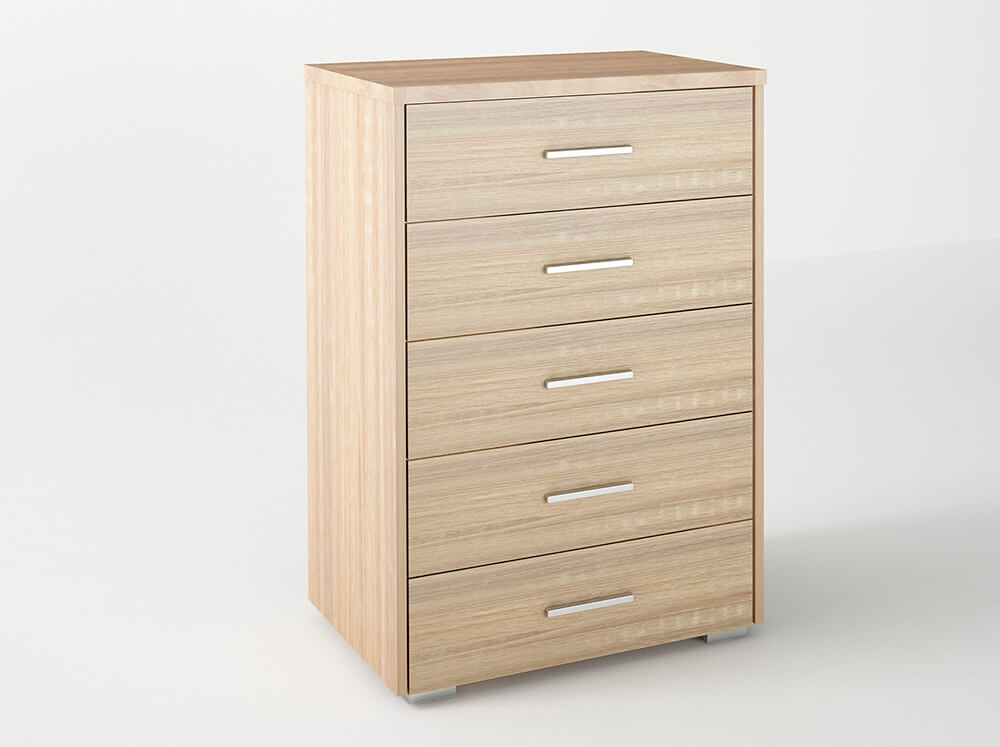 Συρταριέρα κατασκευασμένη από μελαμίνη υψηλής ποιότητας και ανθεκτικότητας. Διαθέτει 5 αποθηκευτικούς χώρους με μηχανισμό για εύκολη χρήση. Μία μοντέρνα και επιβλητική επιλογή για να κοσμήσετε και να οργανώσετε το χώρο σας. Κατάλληλη και για προσωπική αλλά και επαγγελματική χρήση(π.χ ξενοδοχείο).