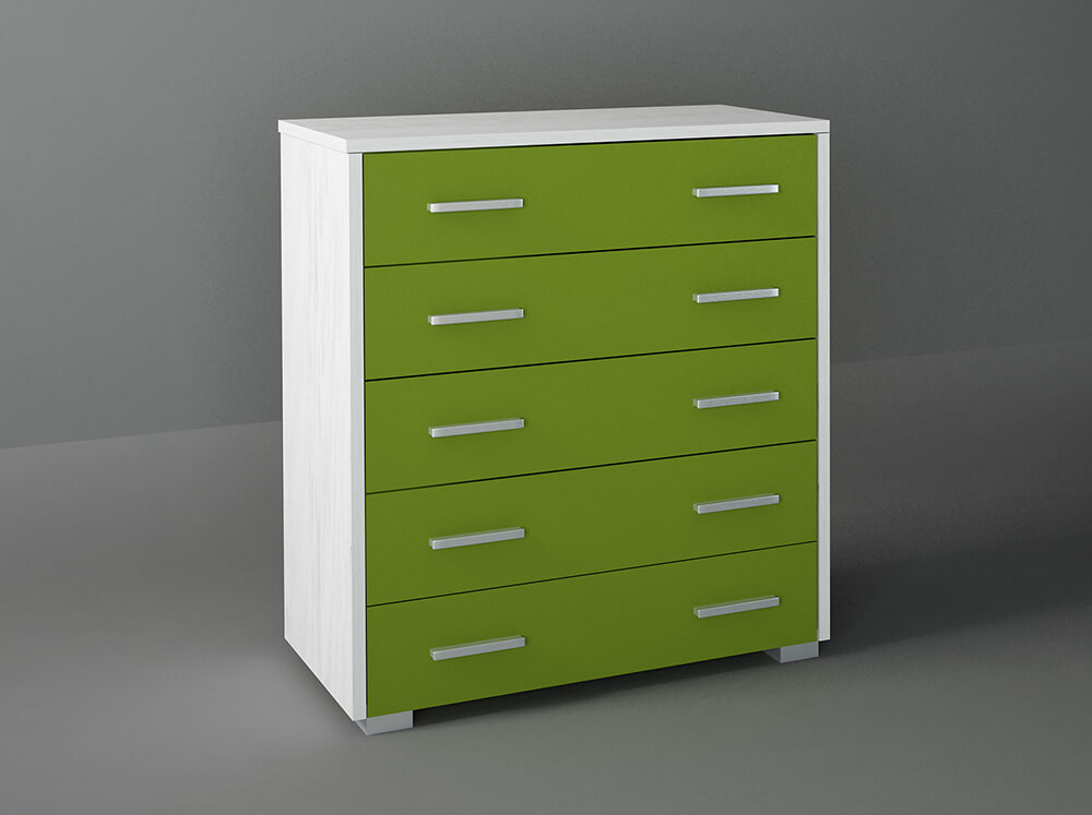 Συρταριέρα κατασκευασμένη από μελαμίνη υψηλής ποιότητας και ανθεκτικότητας, σε χρώμα λευκό ρουστίκ-λαχανί. Διαθέτει 5 αποθηκευτικούς χώρους με μηχανισμό για εύκολη χρήση. Μία μοντέρνα επιλογή για να πλαισιώσετε το παιδικό ή εφηβικό δωμάτιο συνδυάζοντάς το και με τα υπόλοιπα προϊόντα της σειράς και να δημιουργήσετε ένα όμορφο και λειτουργικό περιβάλλον για το παιδί σας.