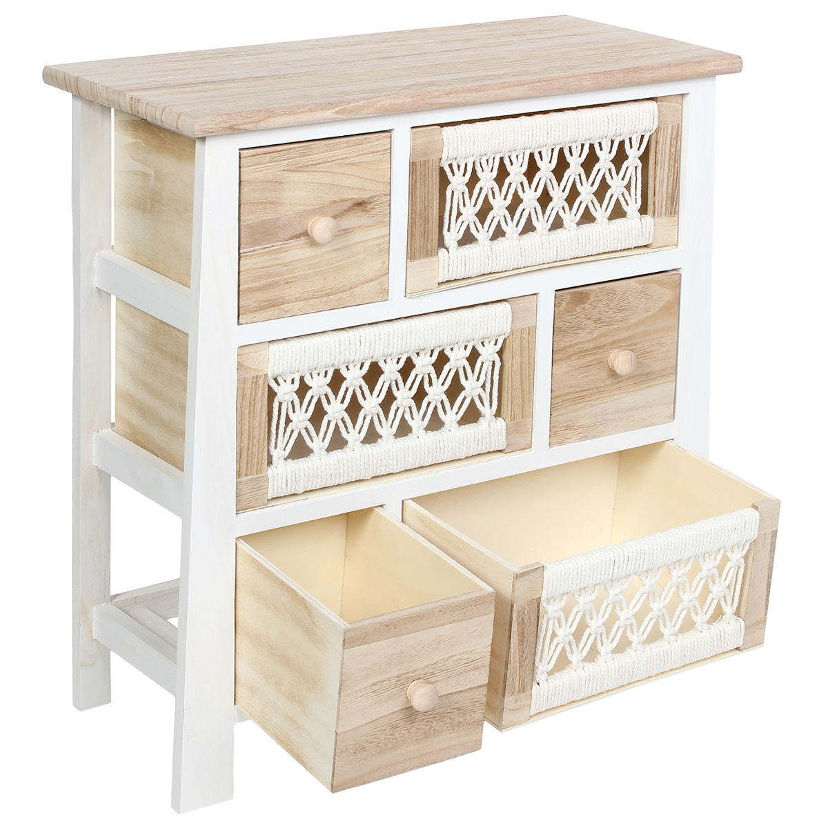 Συρταριέρα με 6 συρτάρια ξύλινη με σχοινί 55,5Χ27Χ60 εκ. Λευκή