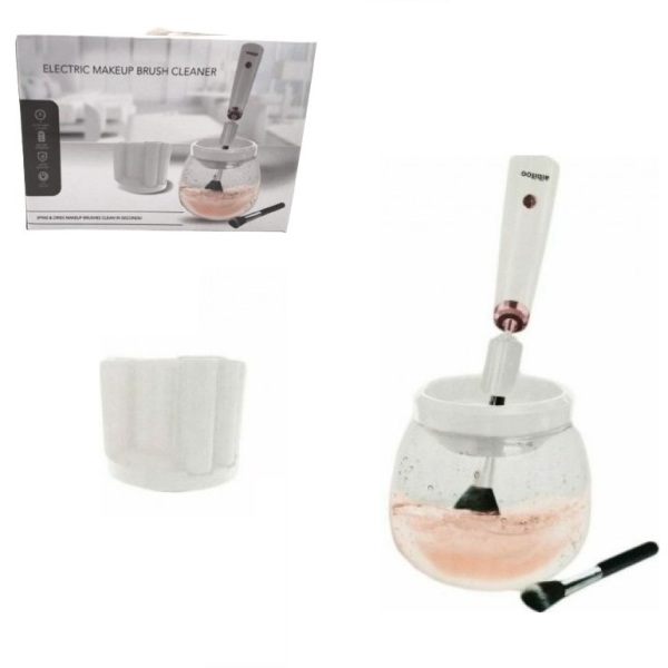 Ηλεκτρική συσκευή καθαρισμού πινέλων μακιγιάζ με περιστρεφόμενη λειτουργία. Με διαφορετικά ακροφύσια για να εφαρμόζουν στα πινέλα σας. Καθαρίστε τα πινέλα σας μέσα σε ελάχιστα δευτερόλεπτα! Απαιτούνται 2 μπαταρίες AAA (δεν περιλαμβάνονται).