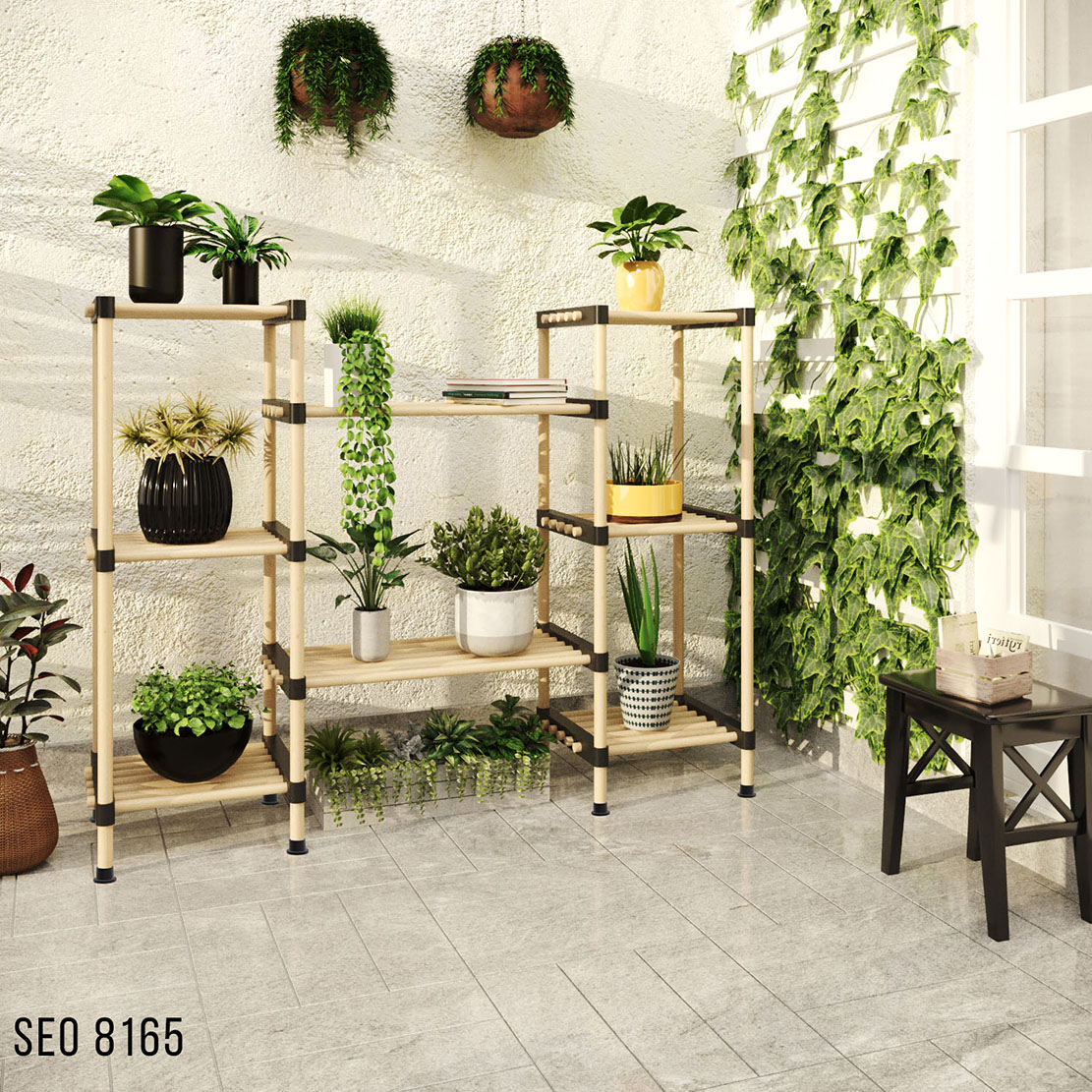 Σύνθεση ραφιέρας με οχτώ ράφια κατασκευασμένη από μασίφ ξύλο εξαιρετικής ποιότητας και αντοχής στη φθορά και στο χρόνο σε φυσικό χρώμα. Ιδανική και πρακτική επιλογή που θα ανανεώσει τη διακόσμηση του χώρου σας και θα βοηθήσει στην οργάνωσή του. Καταλληλη για τον εσωτερικό και τον εξωτερικό σας χώρο.
