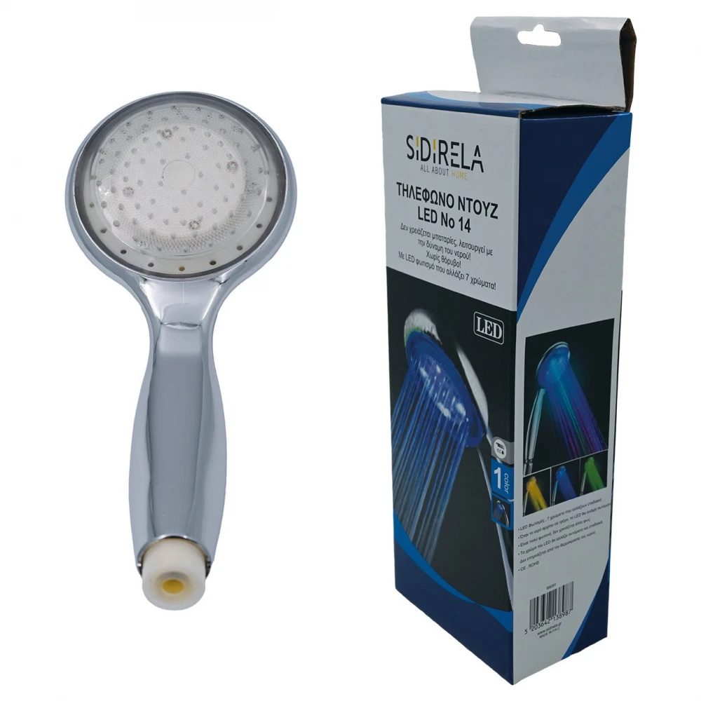 Τηλέφωνο μπάνιου με εμφάνιση inox και φωτισμό led σε 7 χρώματα, με ρυθμιζόμενη ροή.