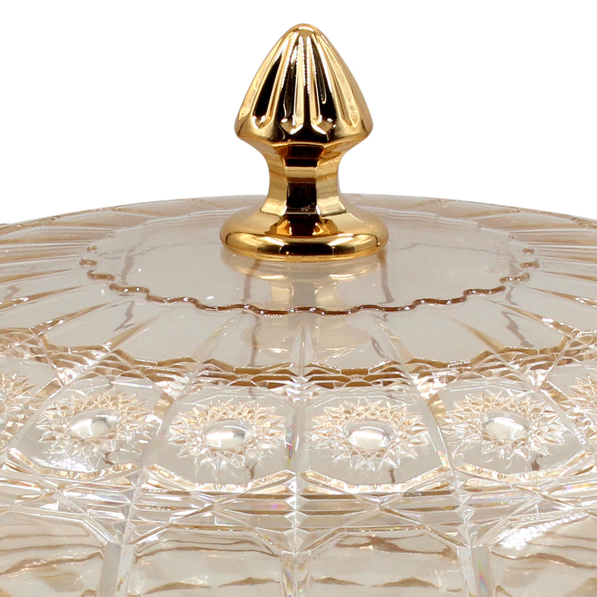 Τουρτιέρα – πιατέλα πλαστική κολωνάτη με καπάκι Φ31Χ25 εκ. μελί με χρυσό – KESKOR 42647-3