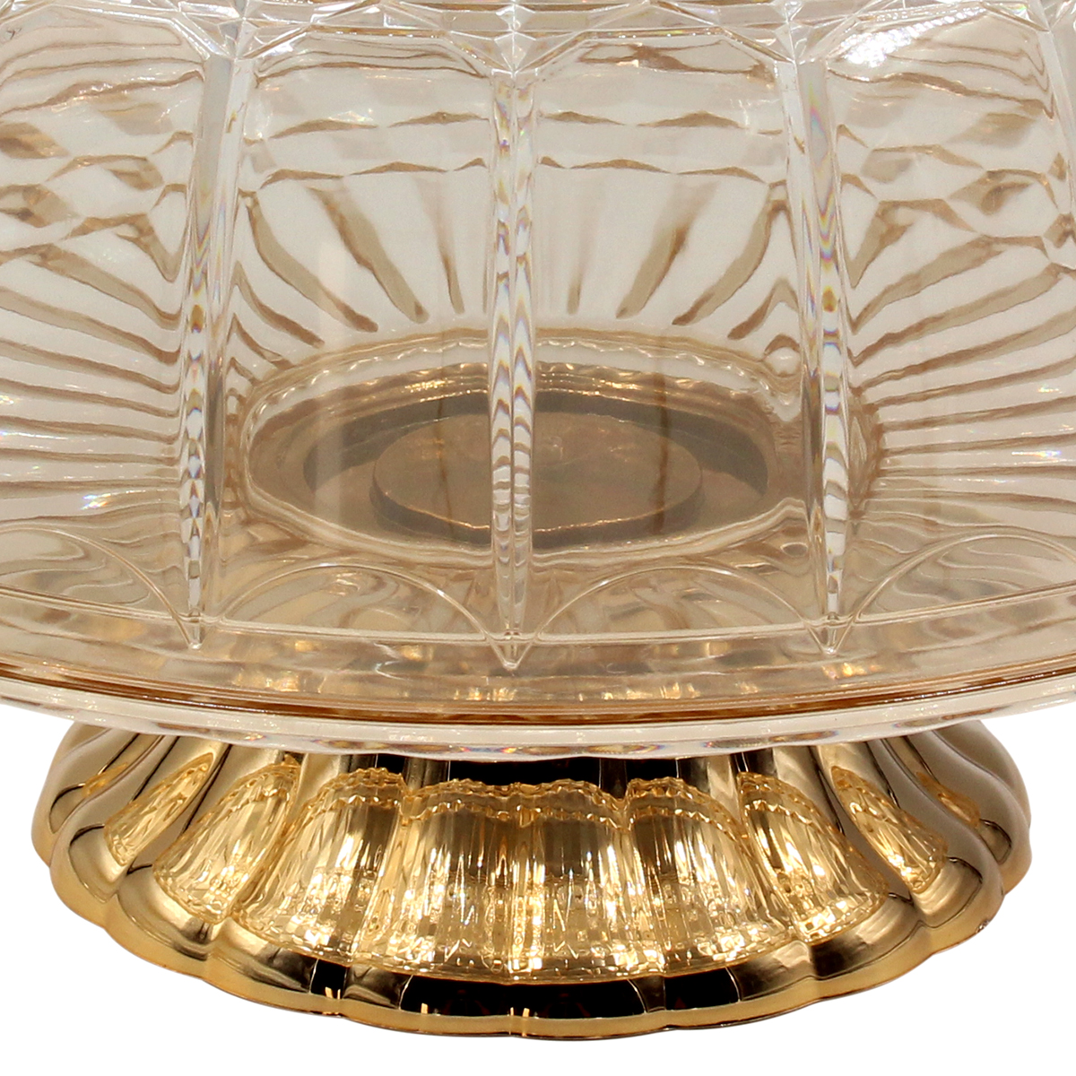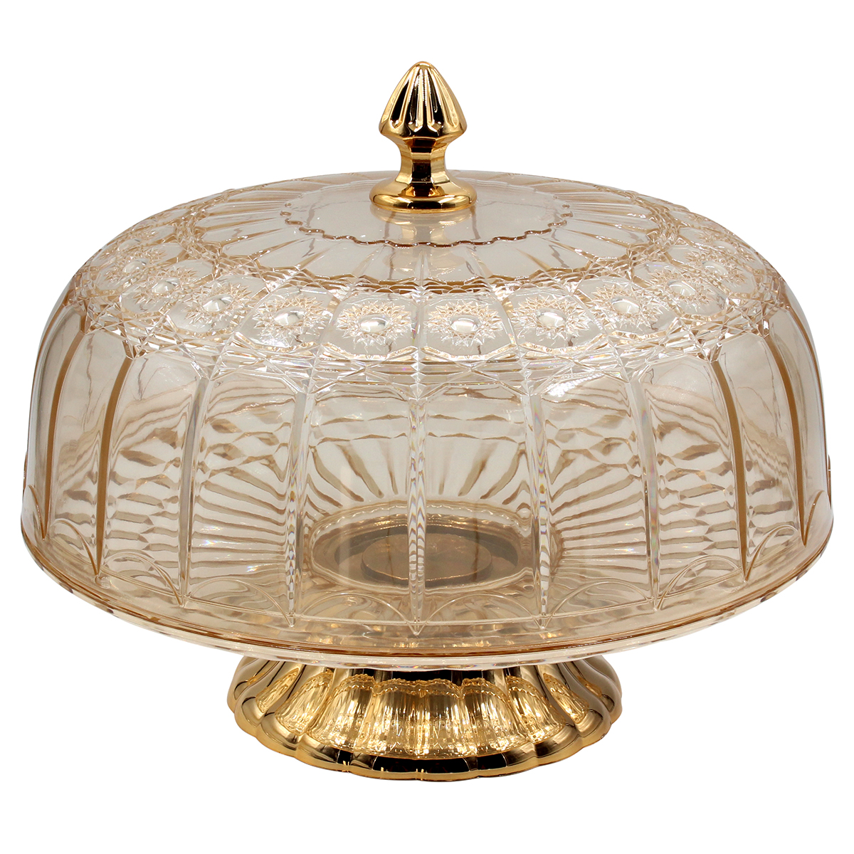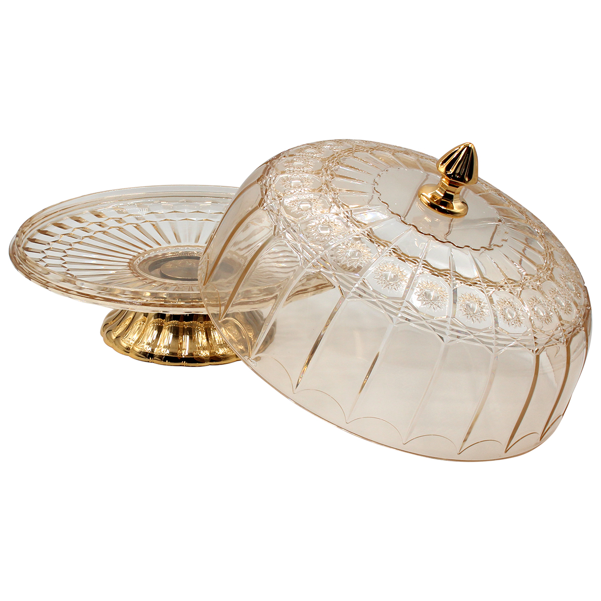 Τουρτιέρα – πιατέλα πλαστική κολωνάτη με καπάκι Φ31Χ25 εκ. μελί με χρυσό