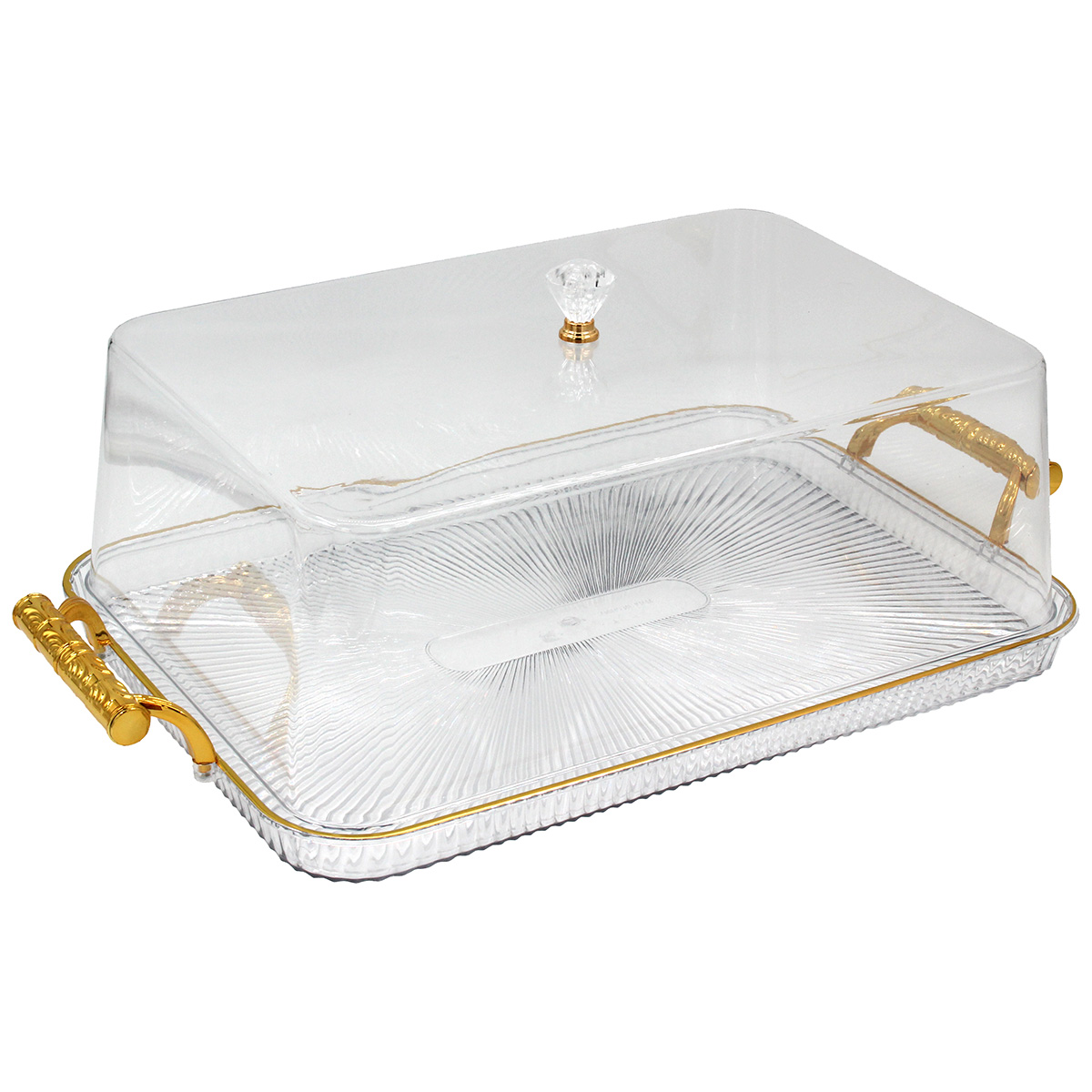 Τουρτιέρα – πιατέλα πλαστική με καπάκι 50Χ30Χ15 εκ. με χρυσό – KESKOR 42675