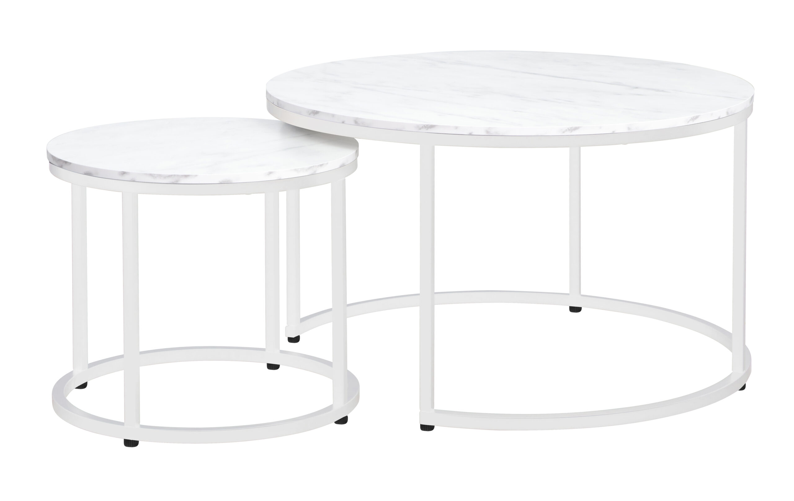 Τραπέζια σαλονιού Chris σετ 2τεμ λευκό μαρμάρου-λευκό 80×48 & 48×42
