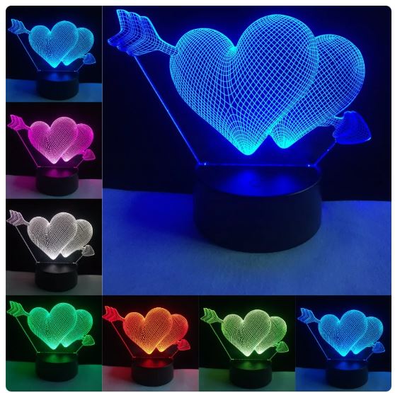 Τρισδιάστατο 3D επιτραπέζιο φωτιστικό LED 7 χρωμάτων καρδιές OEM