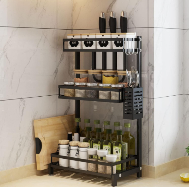 Τριώροφο μεταλλικό ράφι οργάνωσης μπαχαρικών, μαύρο OEM