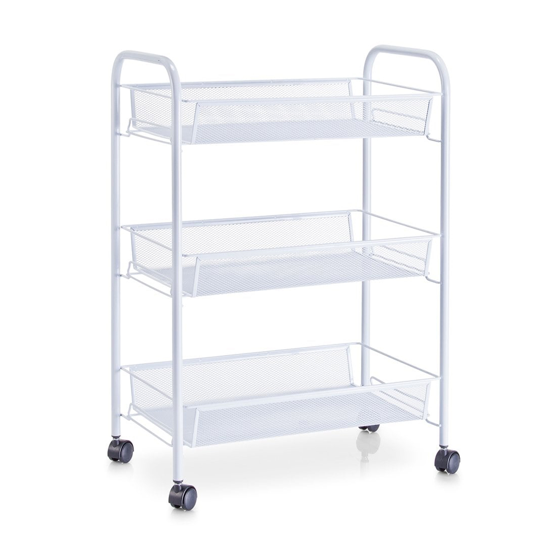 Τρόλεϊ κουζίνας κατασκευασμένο από μέταλλο εξαιρετικής ποιότητας και αντοχής στη φθορά και στο χρόνο σε λευκό χρώμα. Διαθέτει τρεις θέσεις για την αποθήκευση και τοποθέτηση των αντικειμένων σας και ροδάκια για εύκολη μετακίνηση. Ιδανική και πρακτική επιλογή που θα ανανεώσει τη διακόσμηση του χώρου που θα το τοποθετήσετε και θα βοηθήσει στην οργάνωσή του.