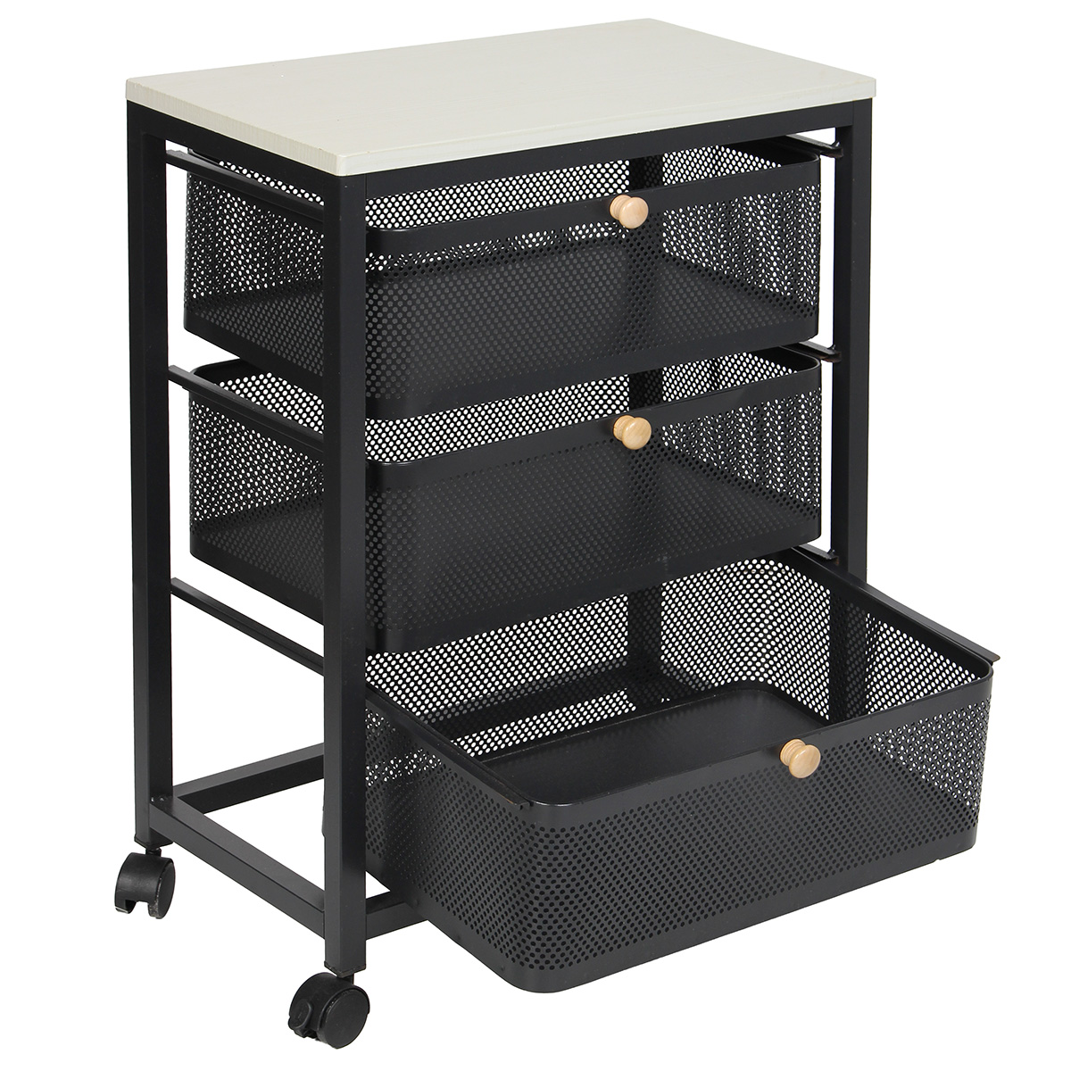 Τρόλεϊ – μανάβης μεταλλικός 47Χ27Χ65 εκ. Μαύρος με 3 συρτάρια και ξύλινη επιφάνεια – KESKOR 51387