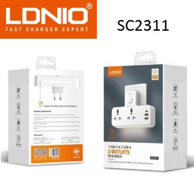 Υποδοχή τροφοδοσίας με διπλή πρίζα και 3 θύρες USB SC2311 LDNIO Ldnio